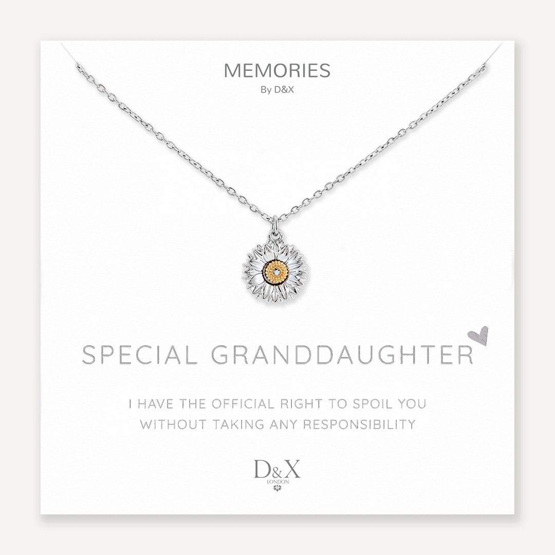 Memories: "SPECIAL GRANDDAUGHTER" | Flower Necklace | White Gold-Plated | Multi-Colour