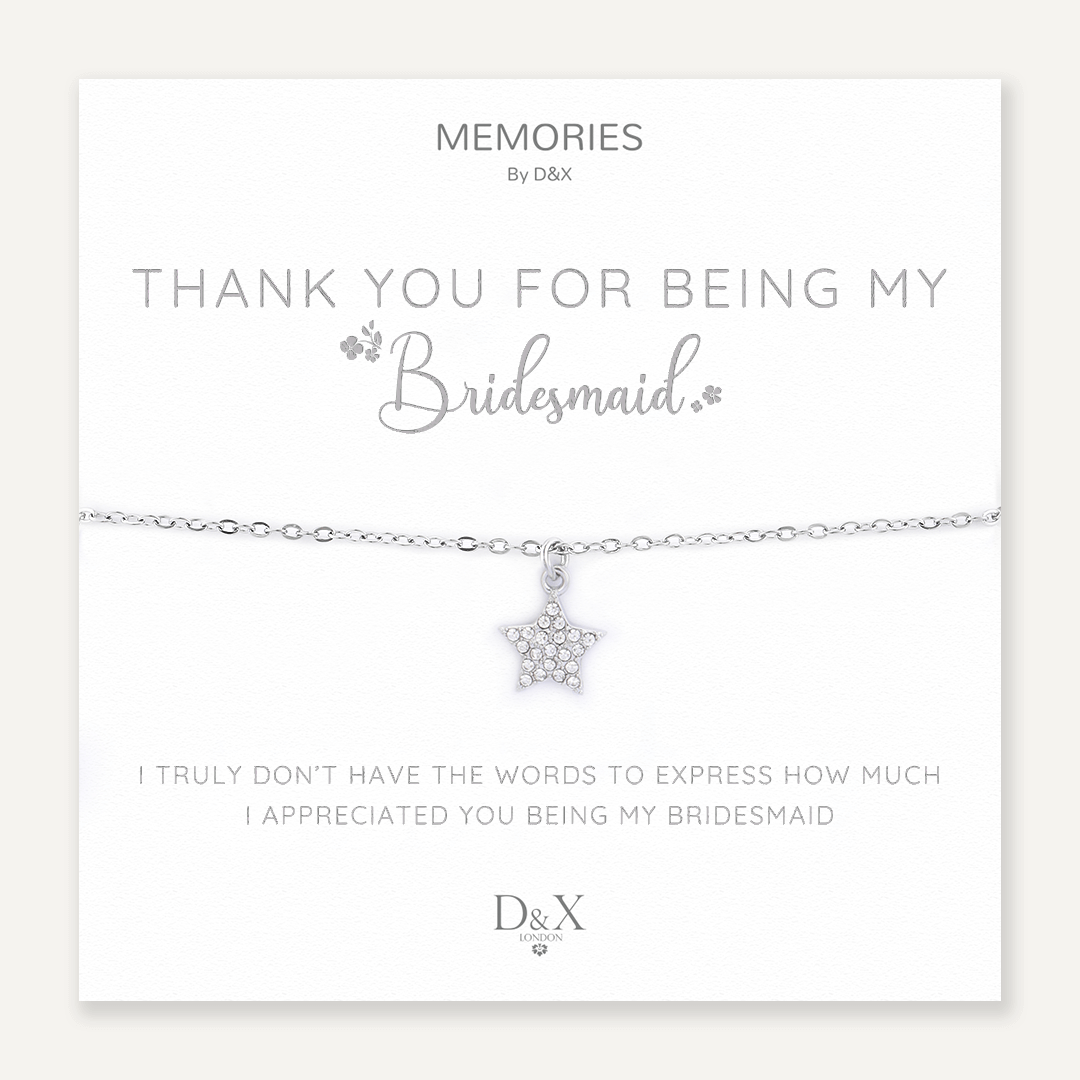 Memories: "THANK YOU FOR BEING MY BRIDESMAID" | Star Bracelet | White Gold-Plated