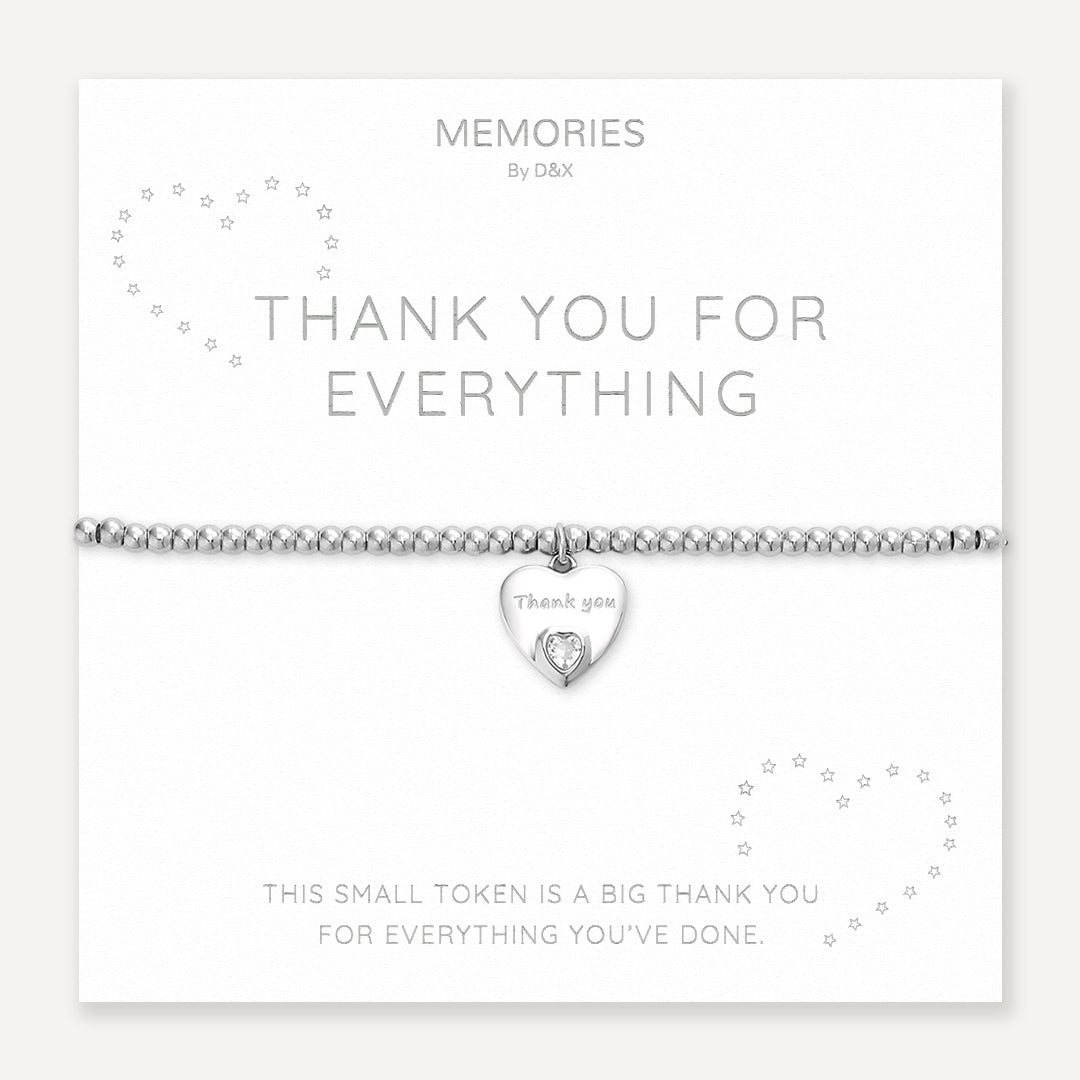 Memories: "THANK YOU FOR EVERYTHING" | Heart Bracelet | White Gold-Plated
