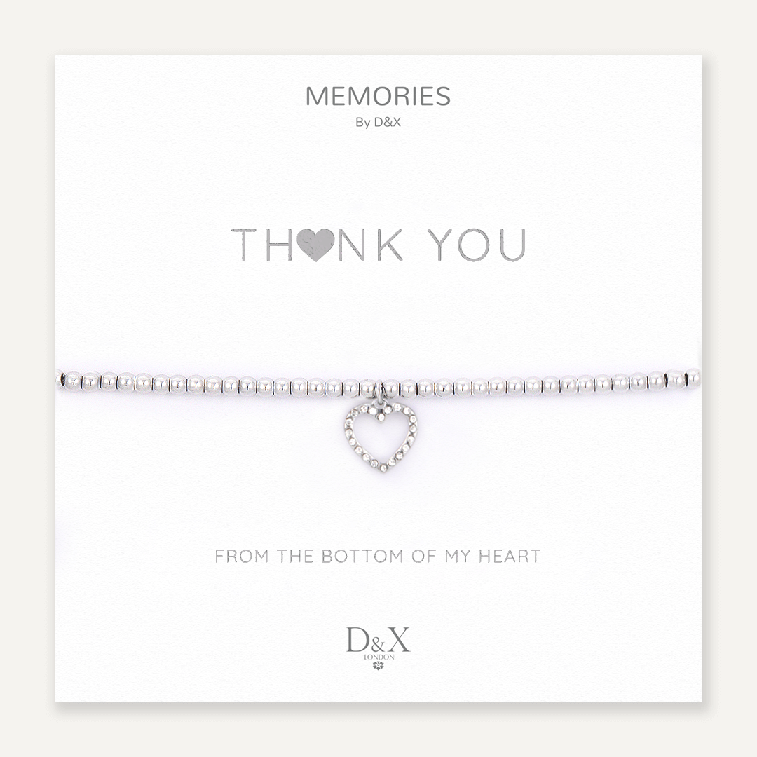 Memories: "THANK YOU" | Heart Bracelet | White Gold-Plated