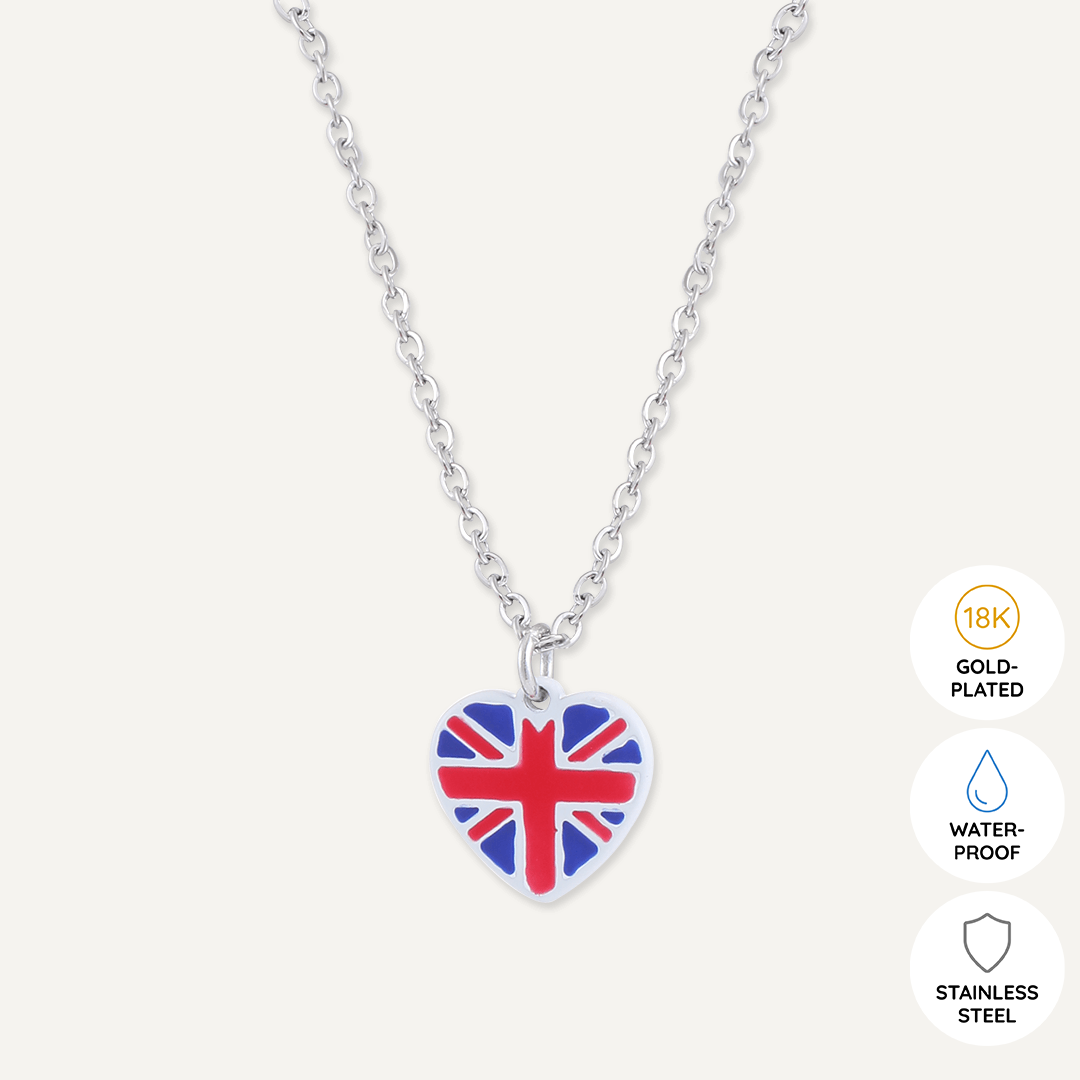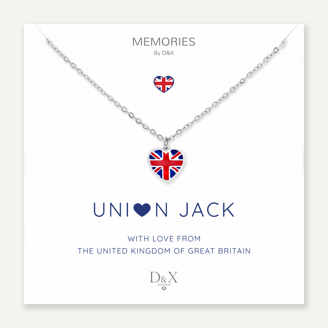 Memories: "UNION JACK" | Heart Necklace | White Gold-Plated | Multi-Colour