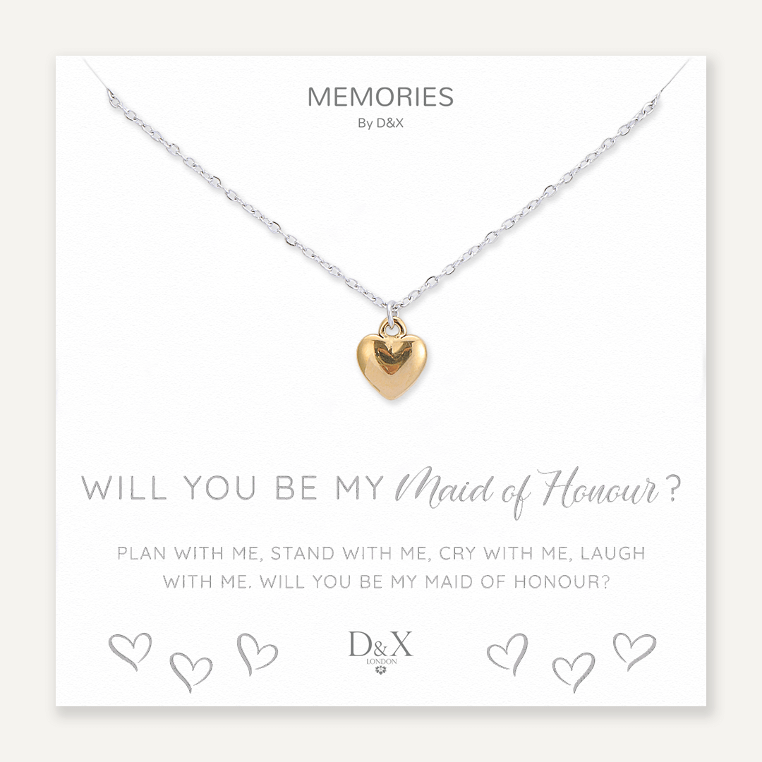 Memories: "WILL YOU BE MY MAID OF HONOUR?" | Heart Necklace | White Gold & 18K Gold-Plated