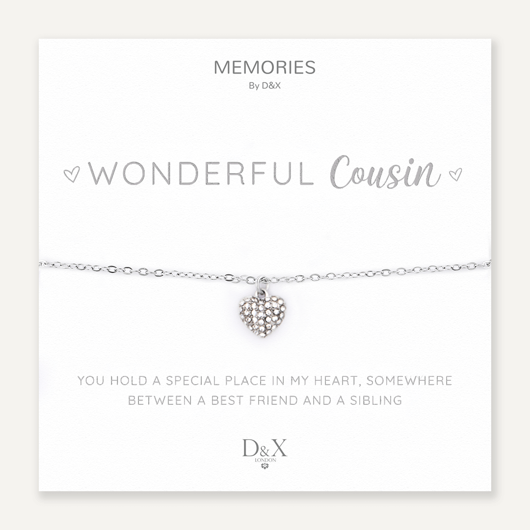 Memories: "WONDERFUL COUSIN" | Heart Bracelet | White Gold-Plated