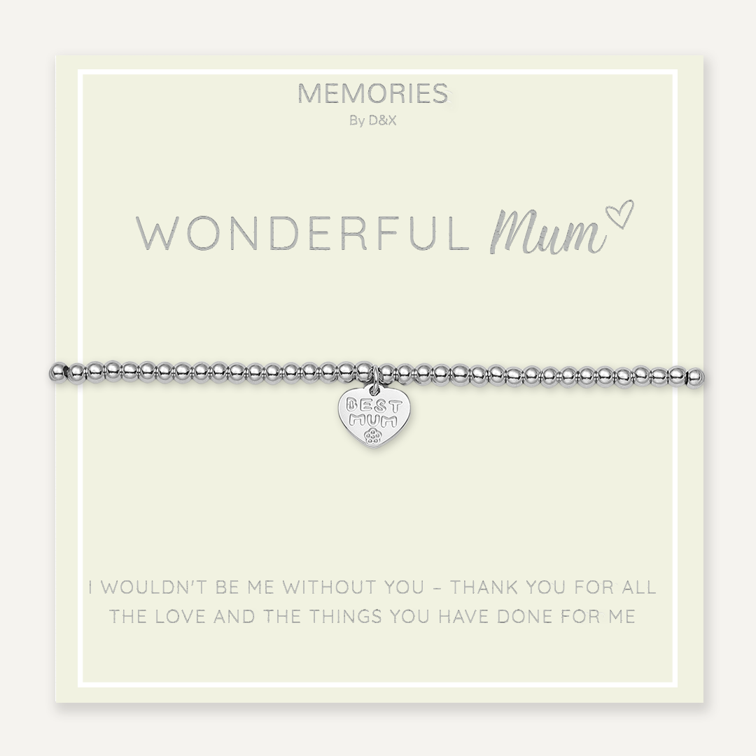 Memories: "WONDERFUL MUM" | Heart Bracelet | White Gold-Plated