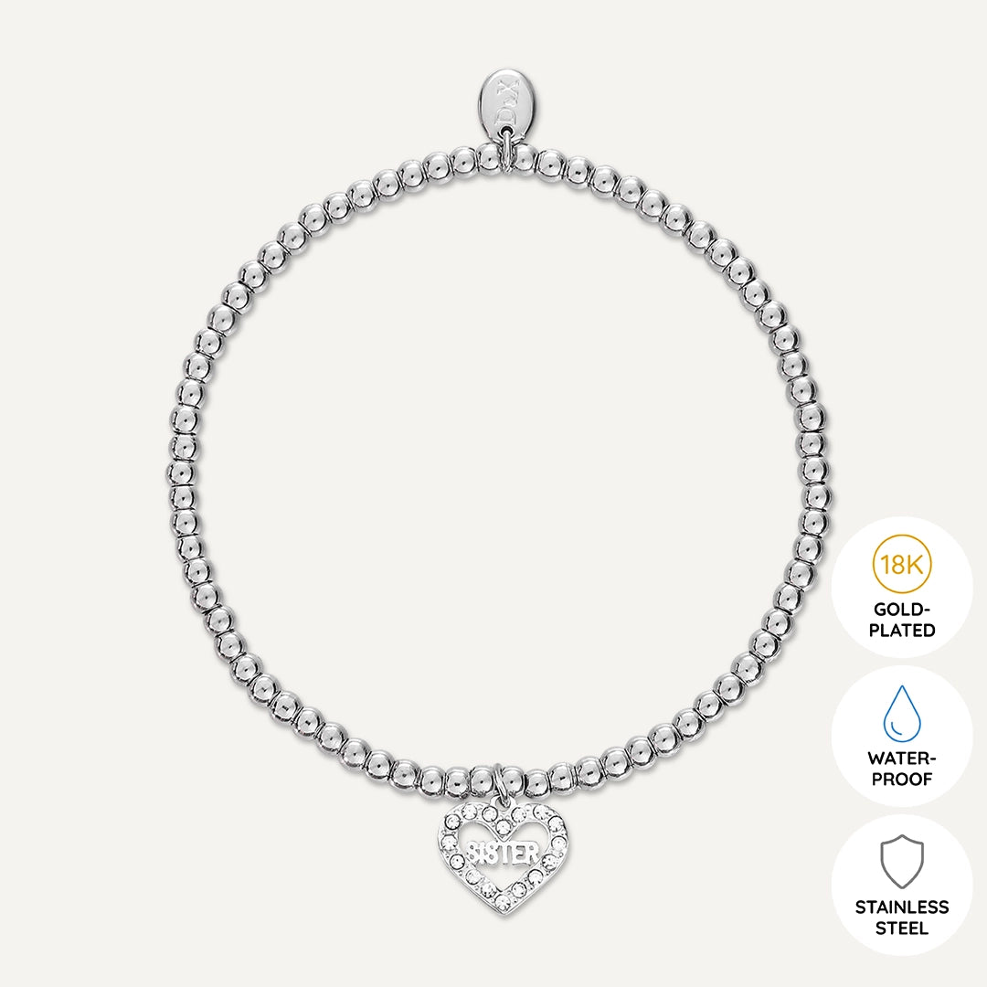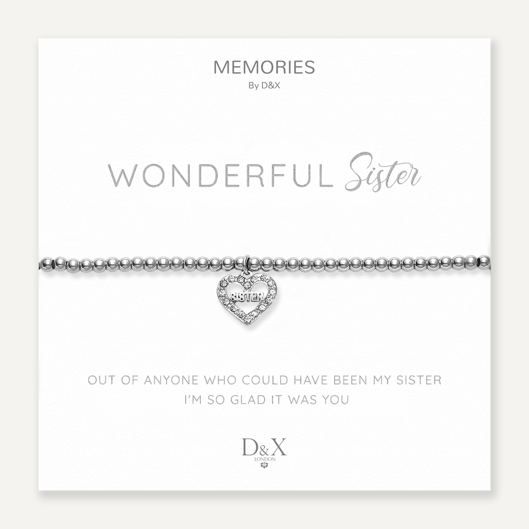 Memories: "WONDERFUL SISTER" | Heart Bracelet | White Gold-Plated