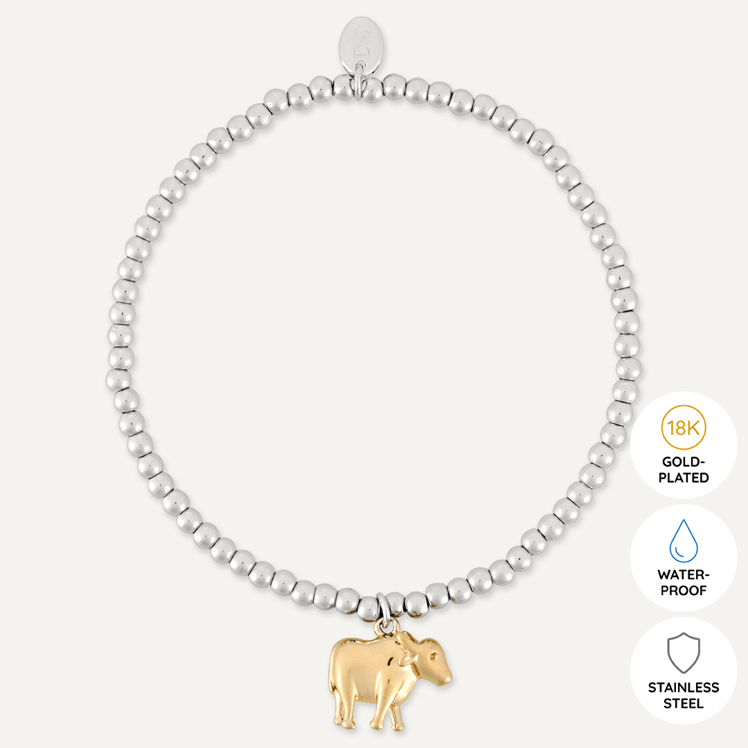 Embrace the Year of the Ox through an enchanting White Gold & 18K Gold-Plated bracelet crafted with elegance, a symbol of 'Diligent, Dependable, Strong, and Determined'