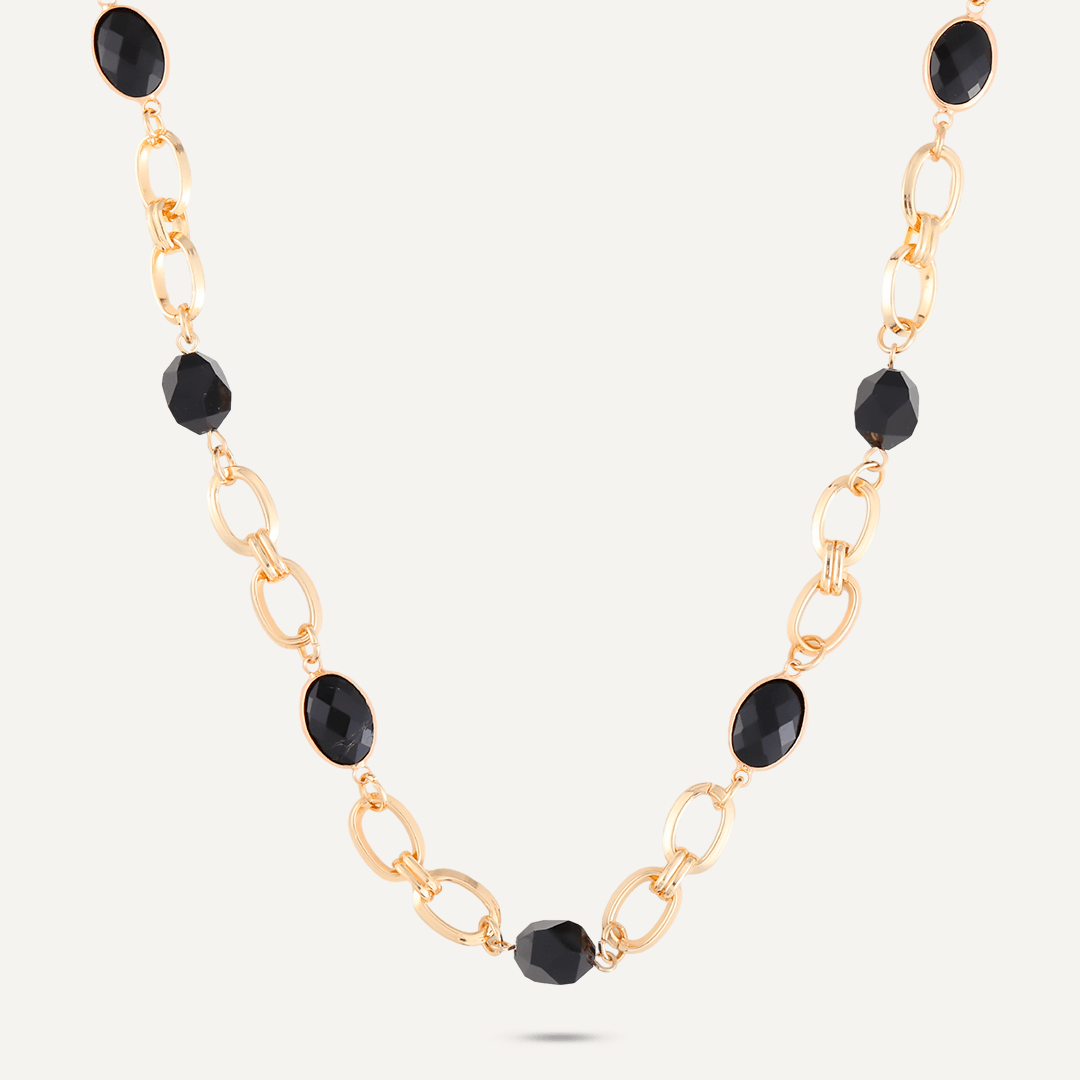 Mixed Cut Black Crystal Short Necklace In Gold-Tone
