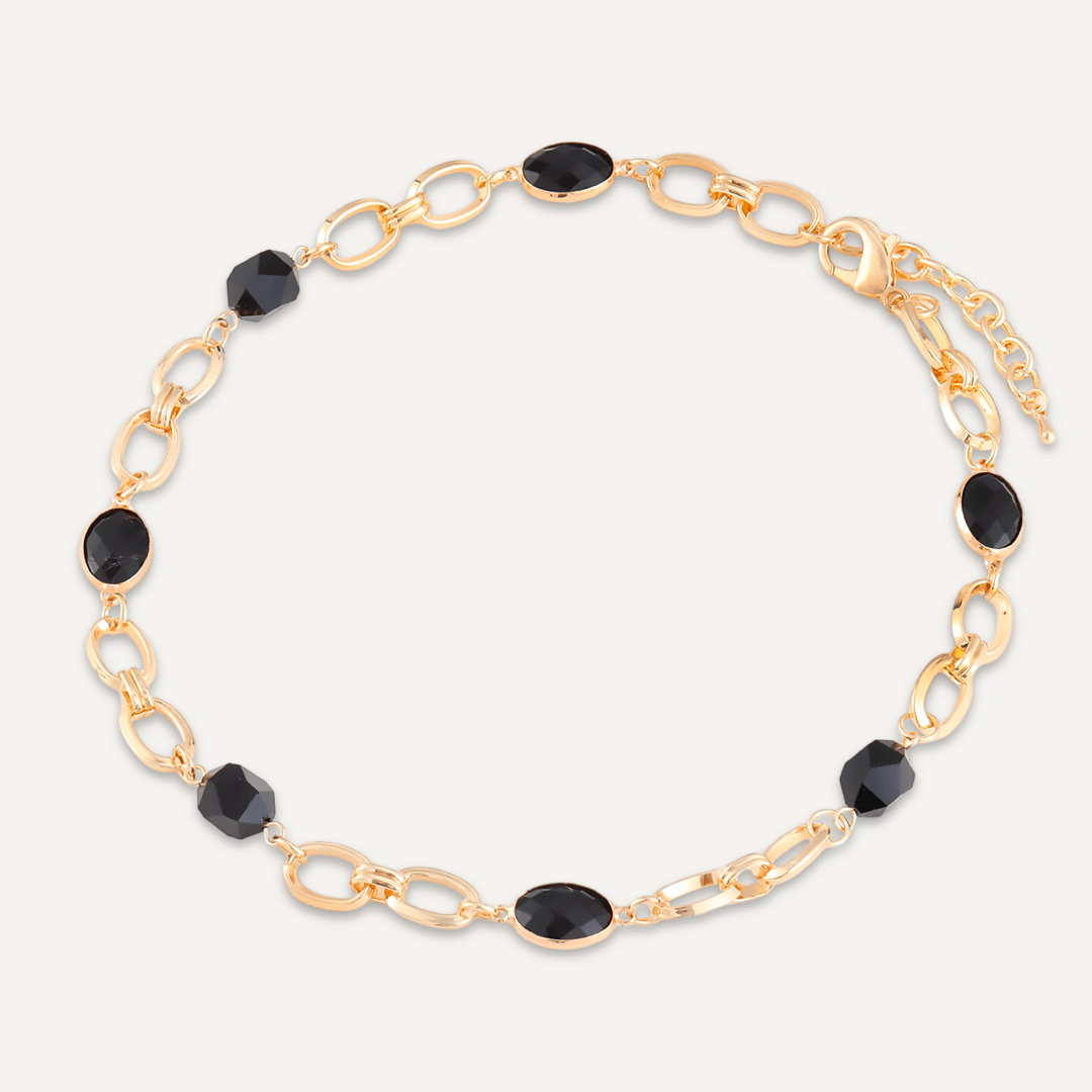 Abstract Black Crystal Clasp Bracelet In Gold-Tone