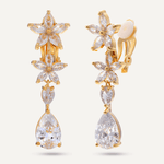 Mixed Cut Crystal Clip On Drop Earrings In Gold-Tone