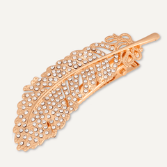 Crystal Feather Hair Clip In Gold-Tone