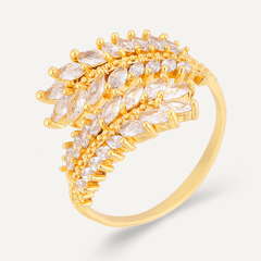 Kylie Cubic Zirconia Open Feather Ring In Gold-Tone