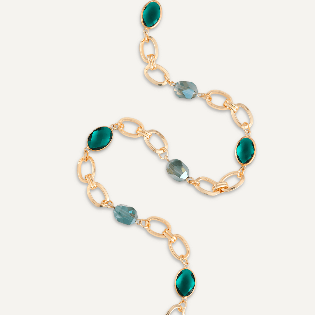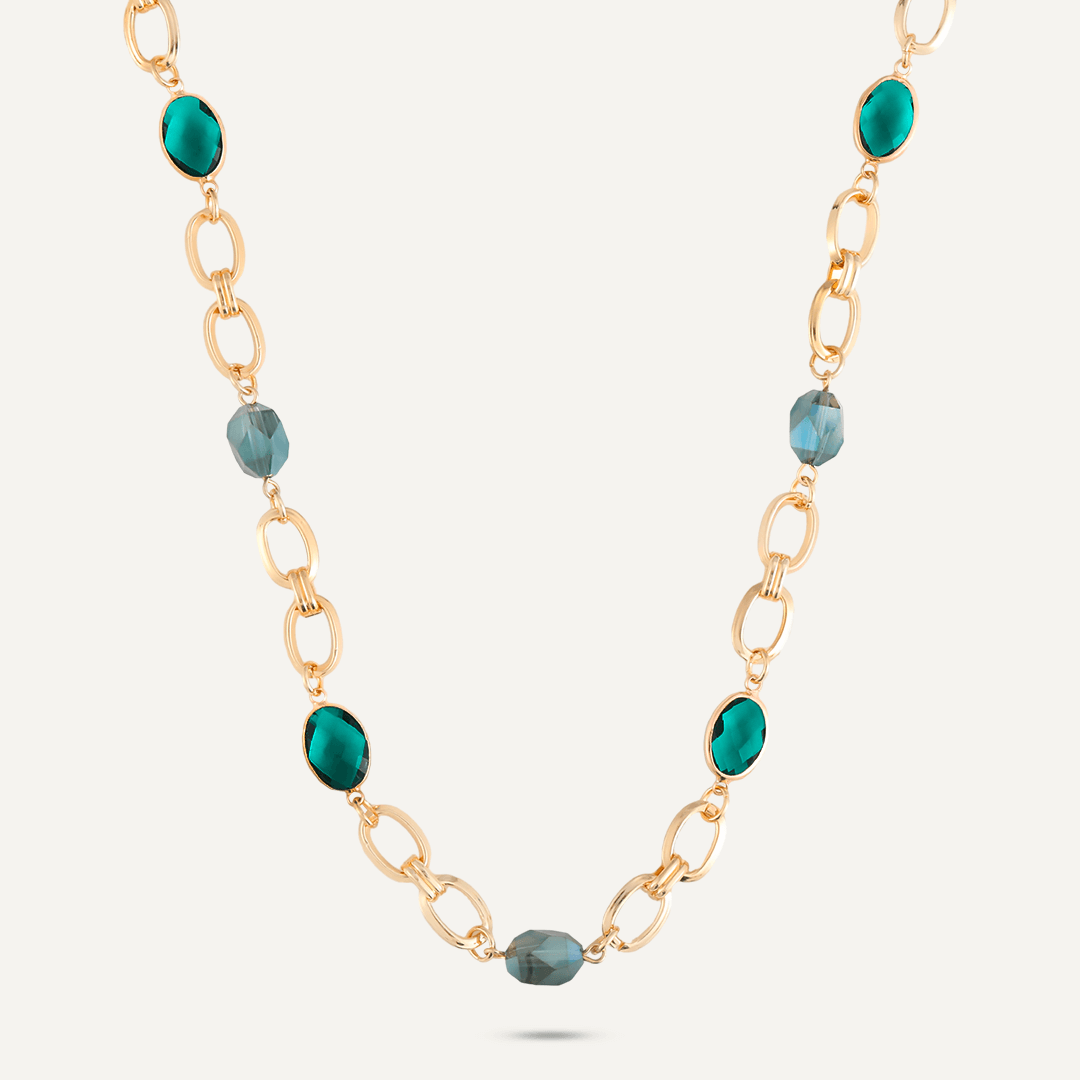 Mixed Cut Green Crystal Short Necklace In Gold-Tone