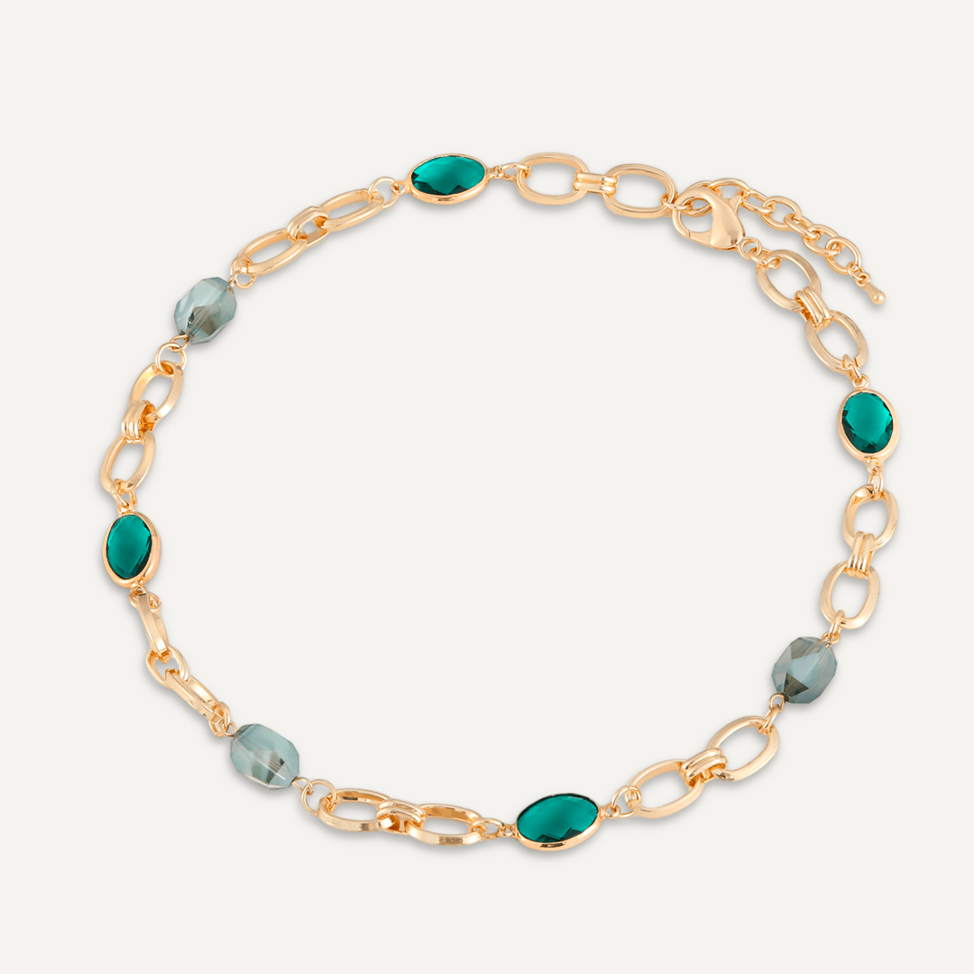 Abstract Green Crystal Clasp Bracelet In Gold-Tone