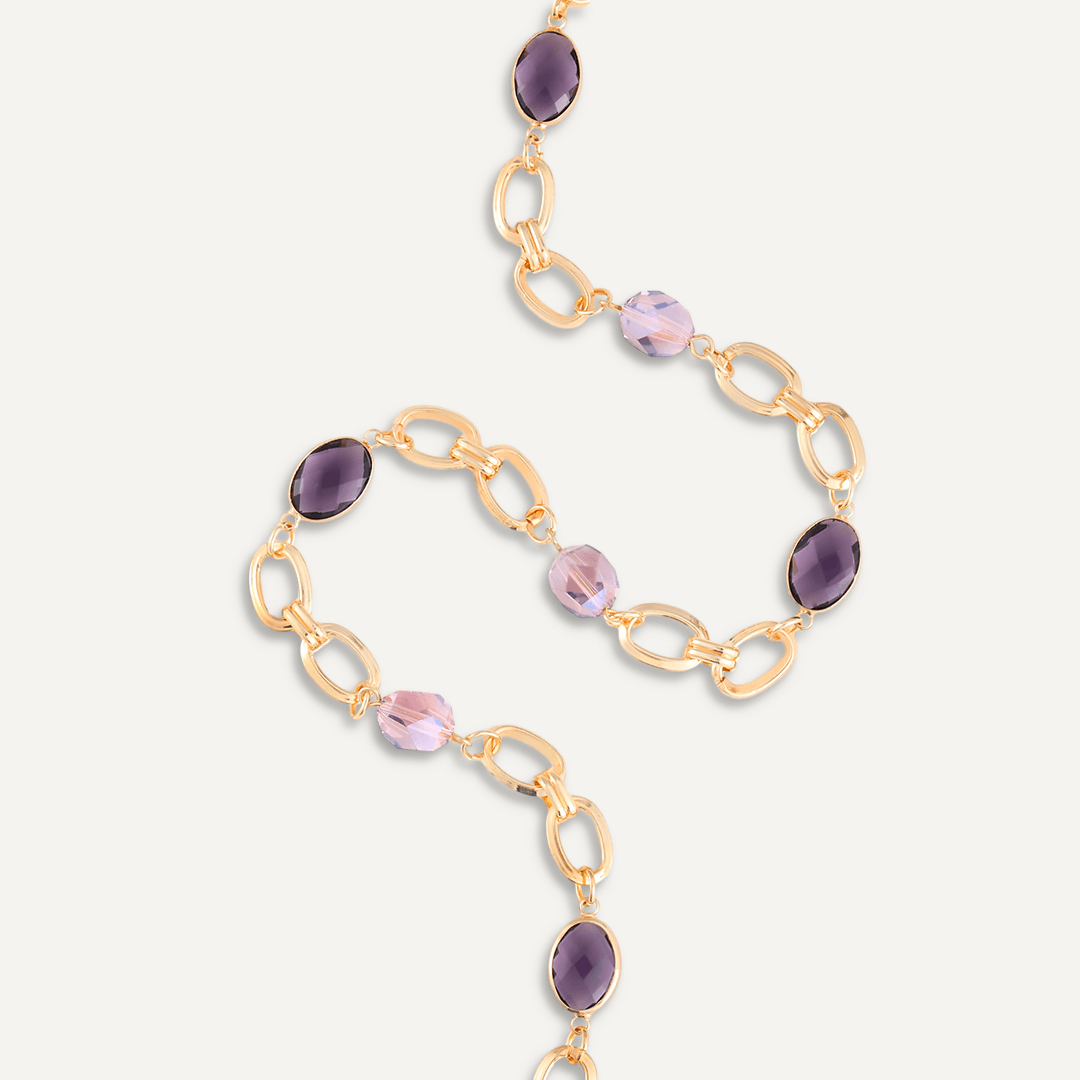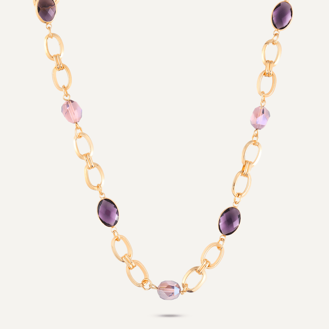 This stunning gold-tone link necklace features dazzling purple crystals.