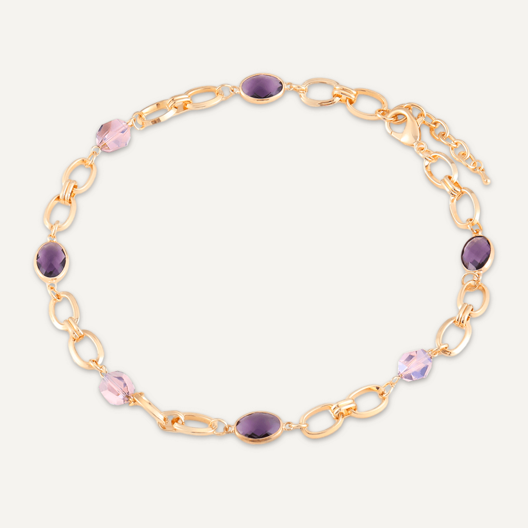 Abstract Purple Crystal Clasp Bracelet In Gold-Tone