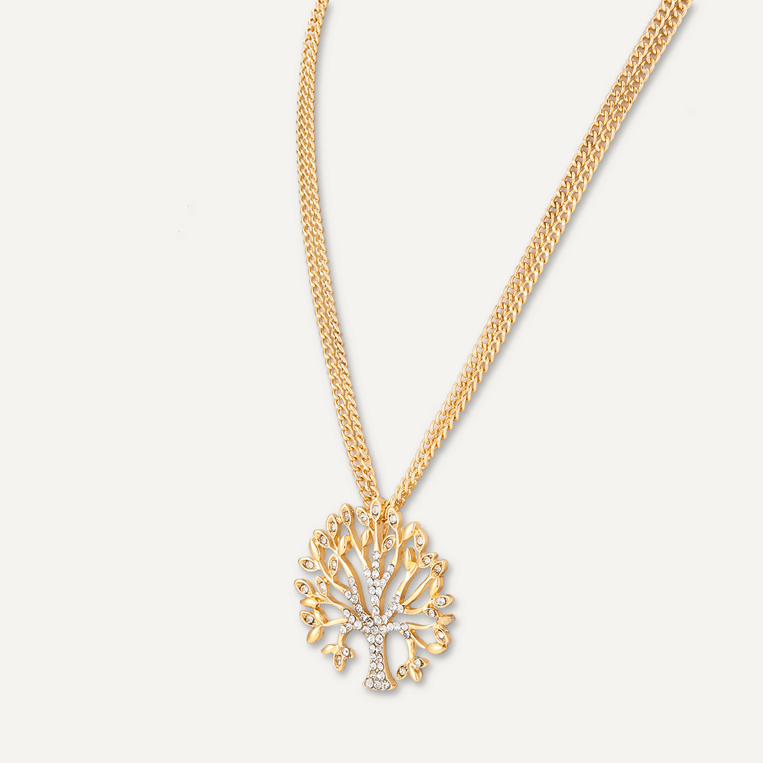 Multi-Chain Tree Of Life Crystal Necklace In Gold-Tone