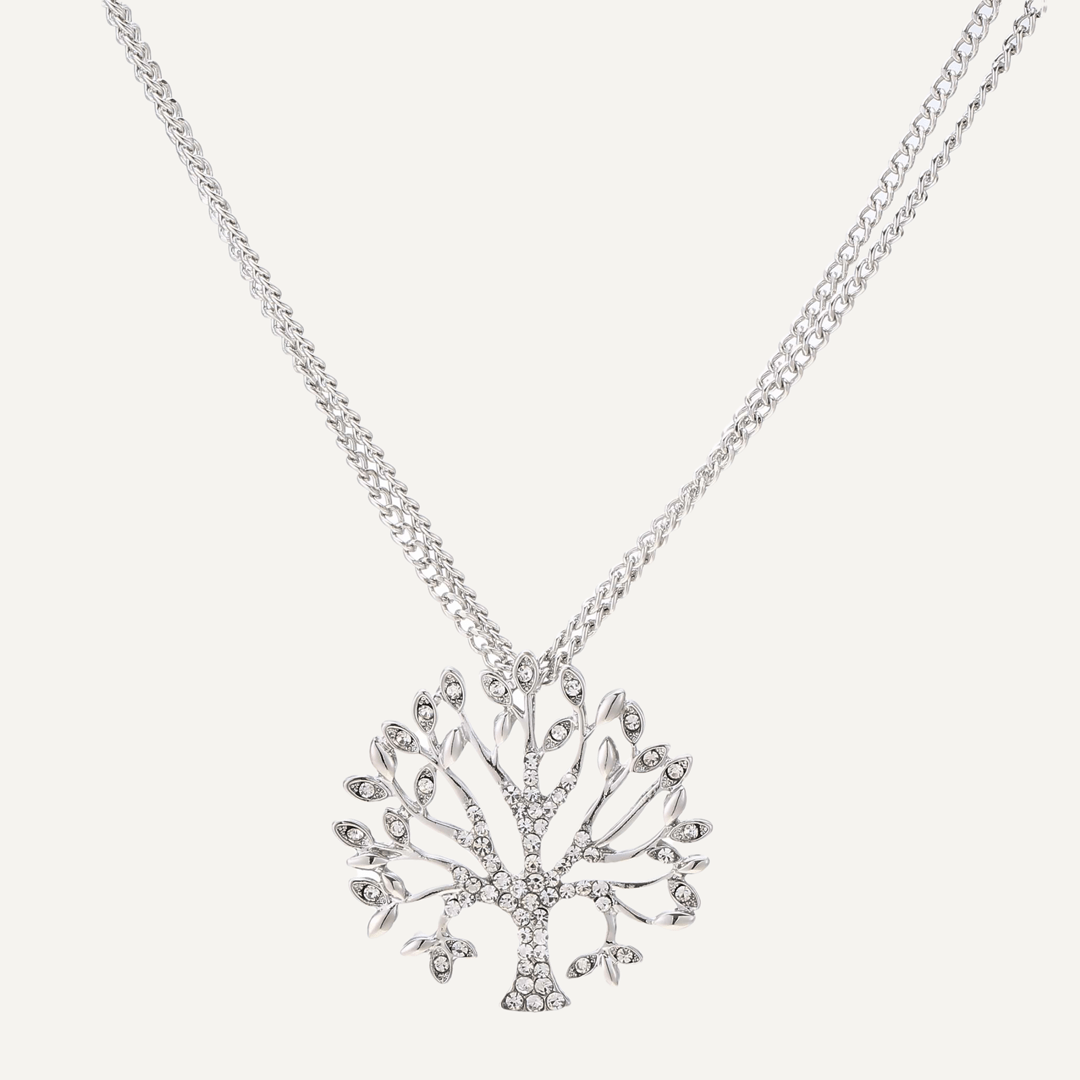 Simple and sophisticated, this long necklace features a tree of life crystal pendant.