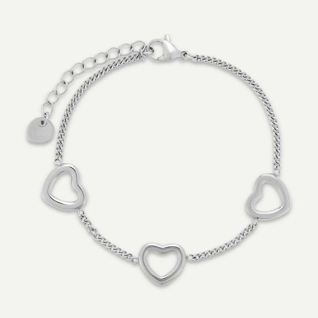 Multi Heart Clasp Bracelet In Silver-Tone