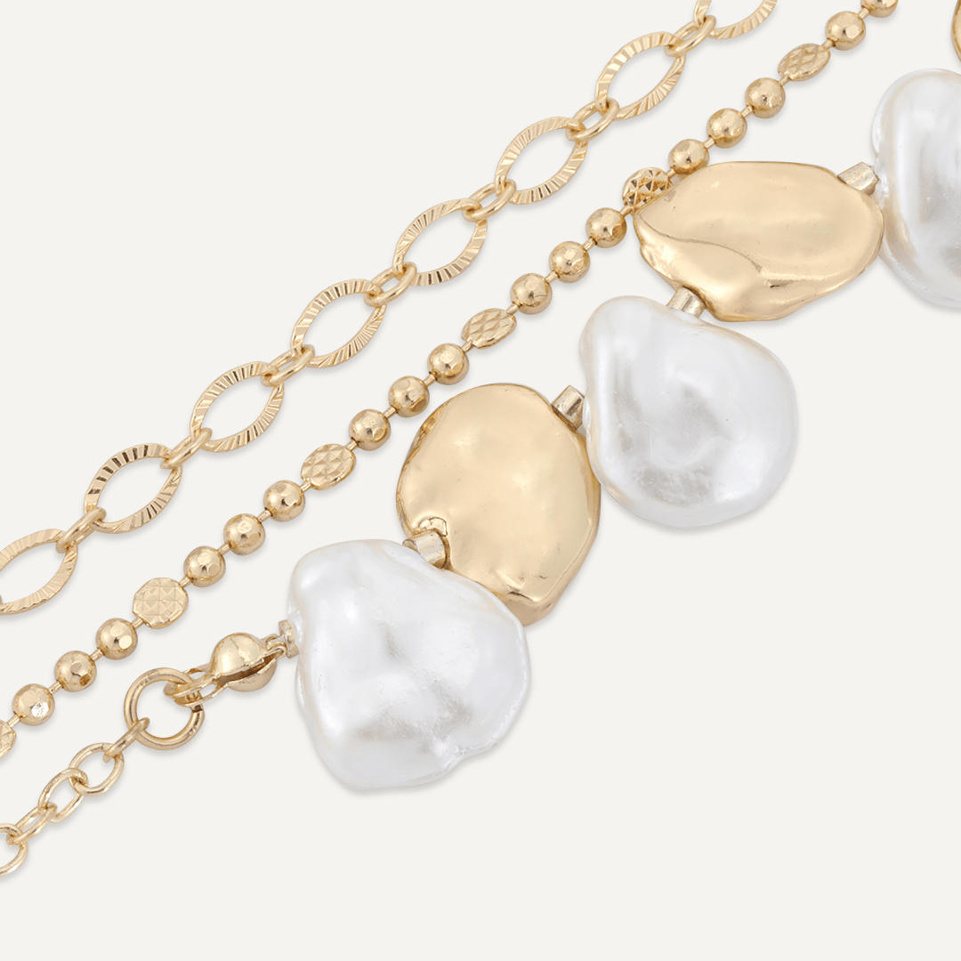 Multi-Layer Classic Faux Pearls Lobster Clasp Bracelet In Gold-Tone