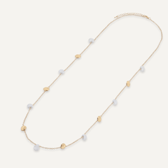 We recommend that you store your plated jewellery in a soft pouch or box when not in use, to increase the longevity of your piece. Do not store your pieces in direct sunlight or in damp and humid environments. Ensure they remain separated, so their chains do not tangle, or scratch against each other.