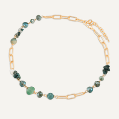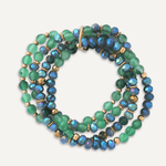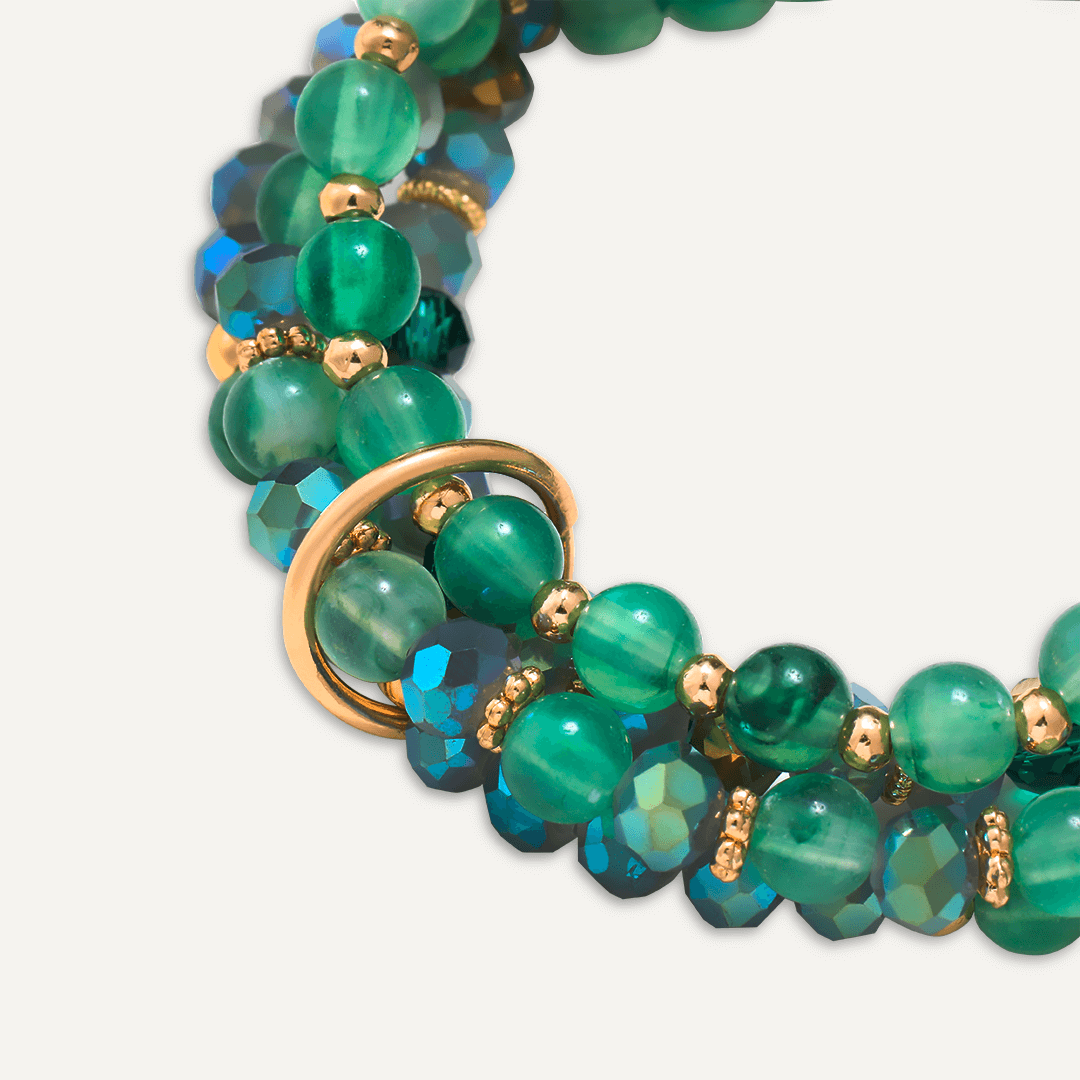 This multi-row bracelet set features stunning green crystals and natural stones.