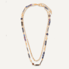 This multi-row bracelet set features stunning mixed grey crystals and natural stones.