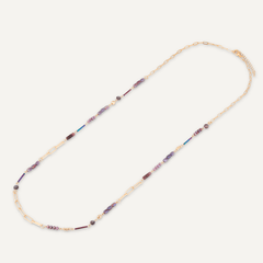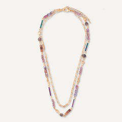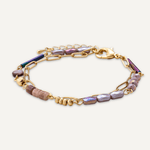 This multi-row bracelet set features stunning mixed purple crystals and natural stones.