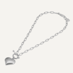 T-Bar Heart Pendant Chain Necklace In Silver-Tone