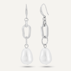Chain-Link Faux Pearl Drop Earrings In Silver-Tone