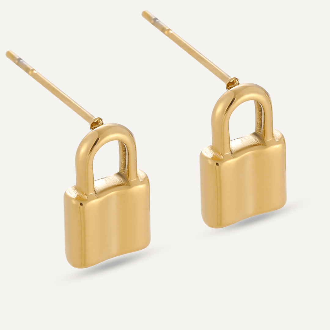 Padlock Stud Earrings In Gold-Tone