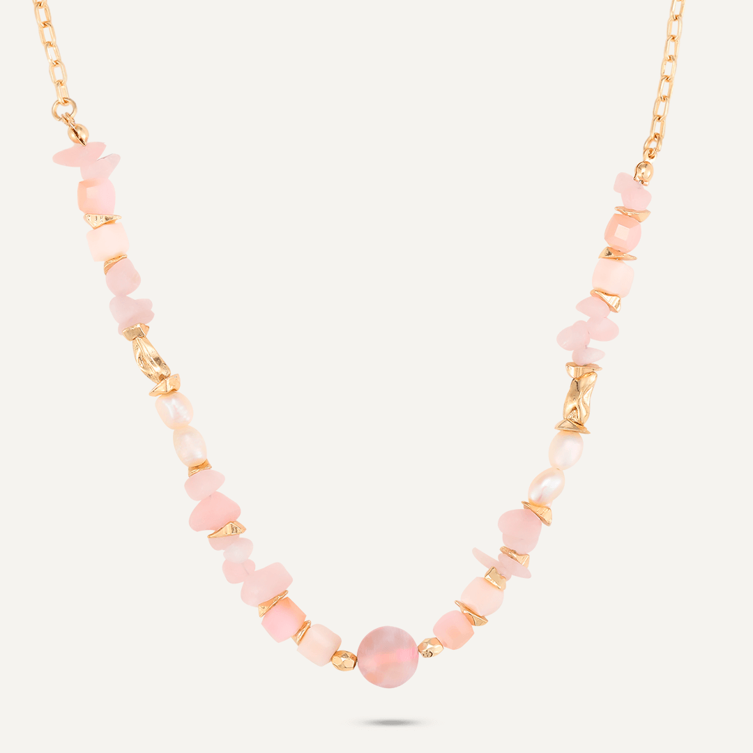 The perfect mix of natural stone, crystals, and pearls. This short gold-tone necklace is perfect for every day or a special occasion.