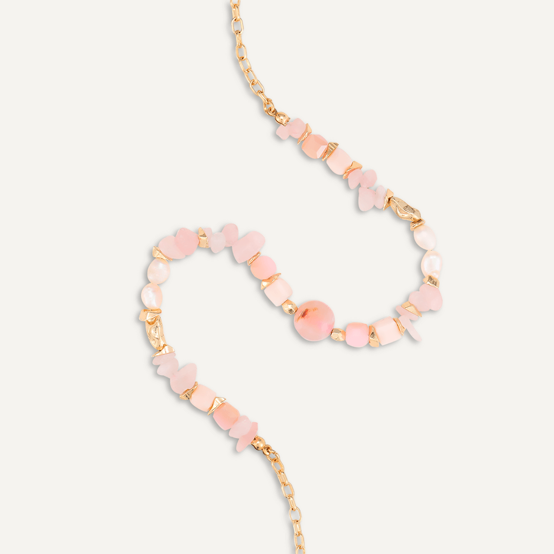Pink Semi-Precious Stone, Crystal, & Fresh Water Pearl Short Necklace In Gold-Tone