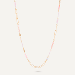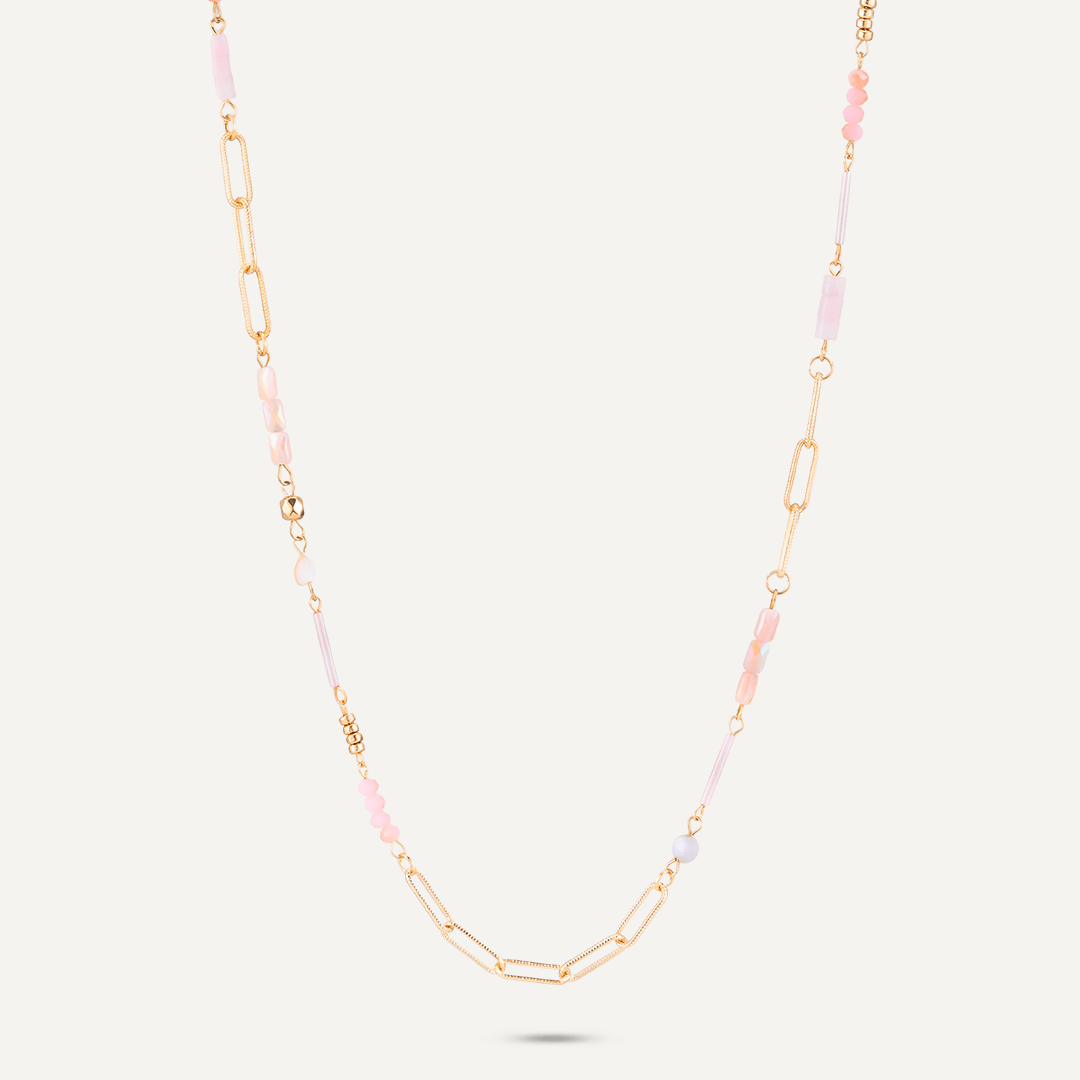 Pink Semi-Precious Stone Long Necklace In Gold-Tone