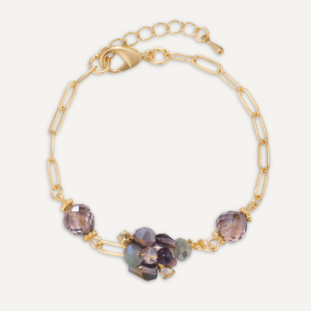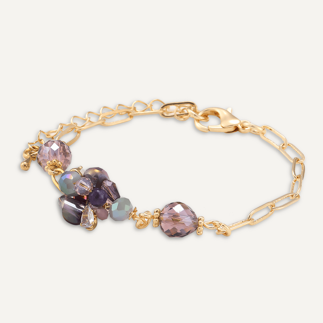Purple Crystal Cluster Clasp Bracelet In Gold-Tone