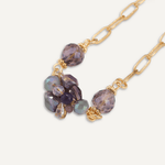 Purple Crystal Cluster Short Necklace In Gold-Tone