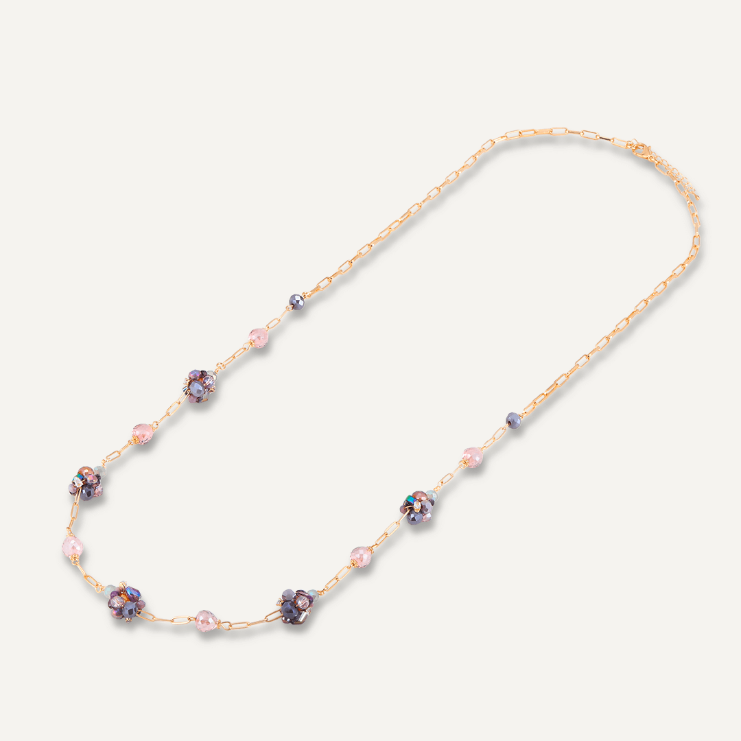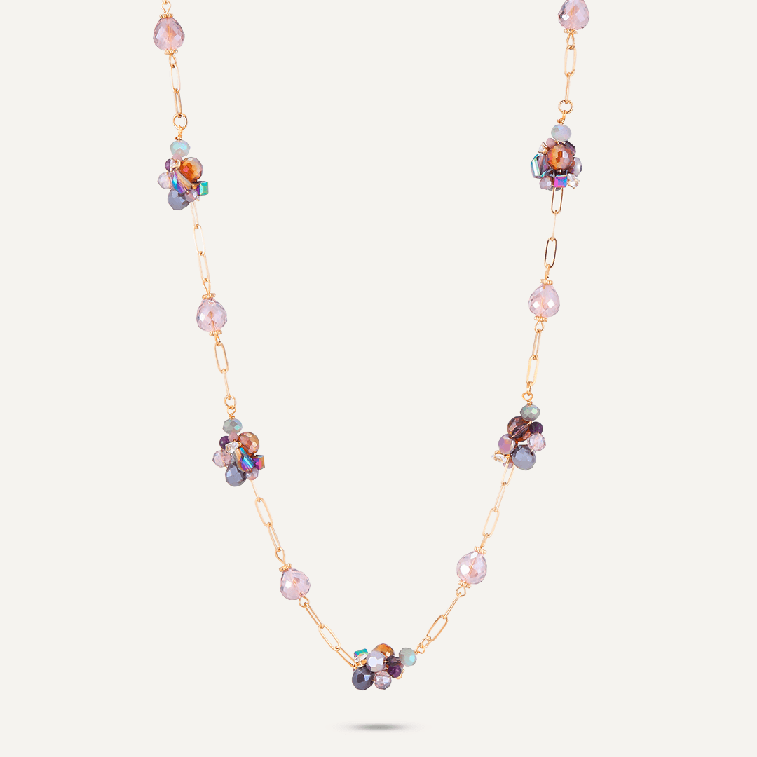 Purple Crystal Cluster Long Necklace In Gold-Tone