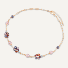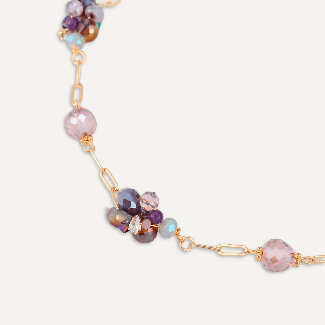 Purple Crystal Cluster Short Necklace In Gold-Tone