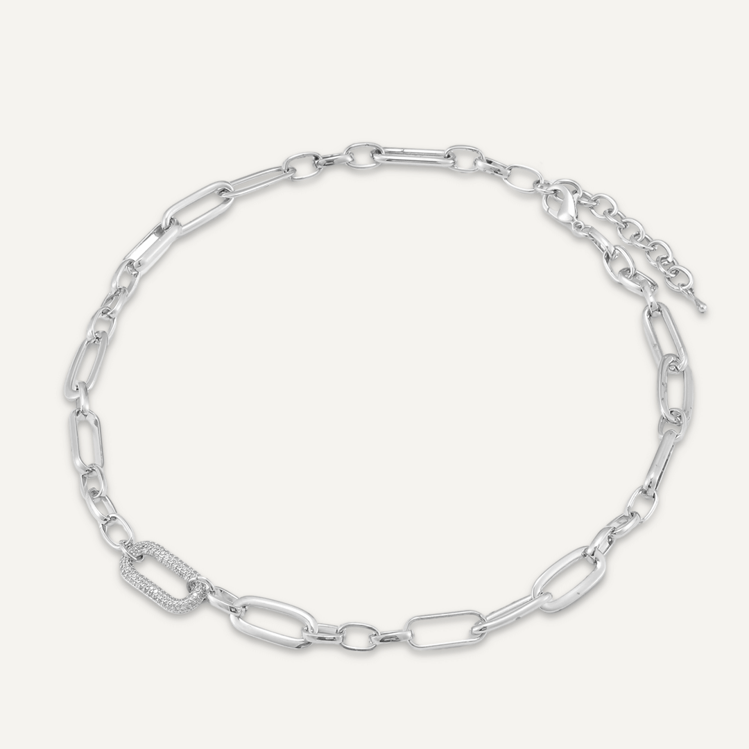 Short Crystal Chain-Link Necklace In Silver-Tone
