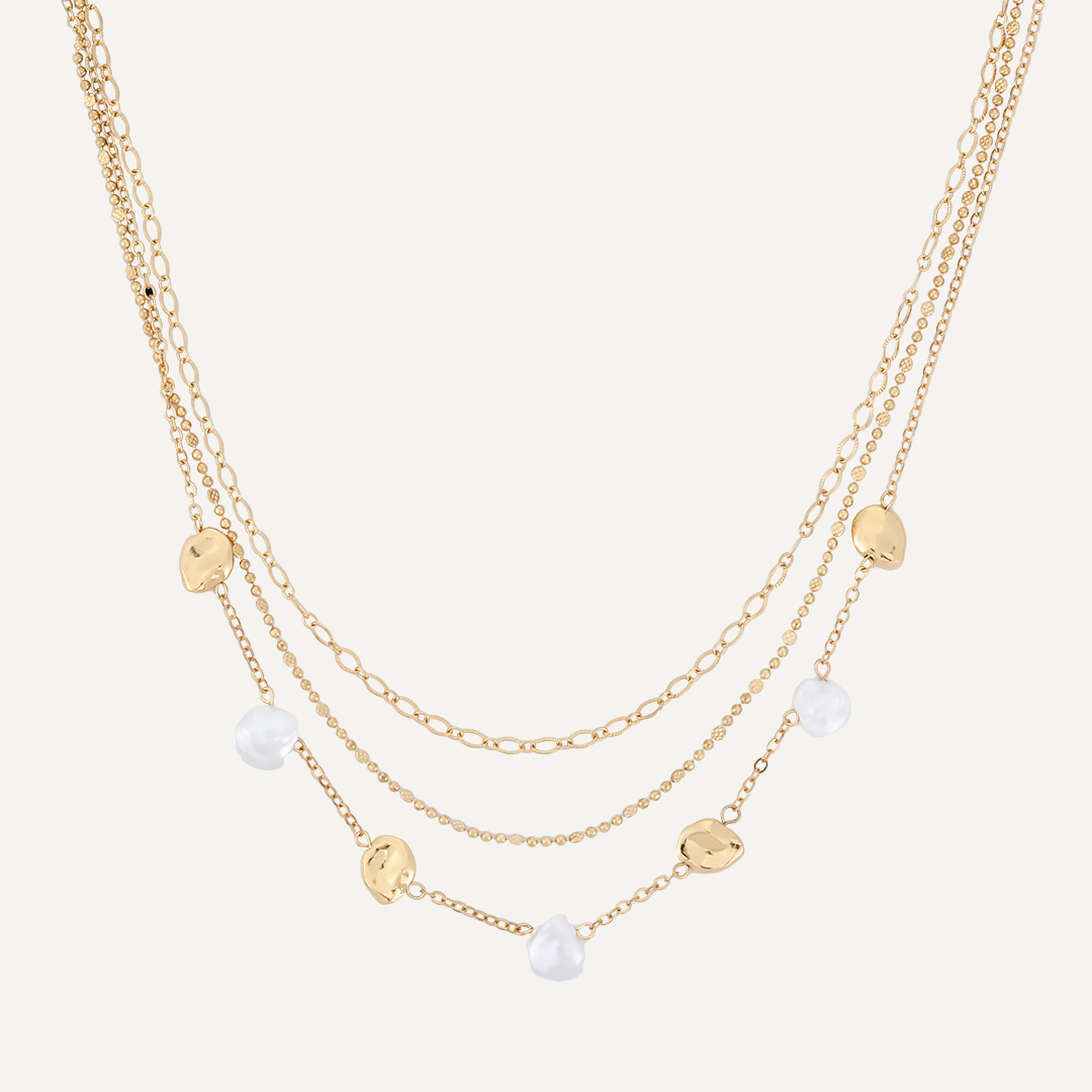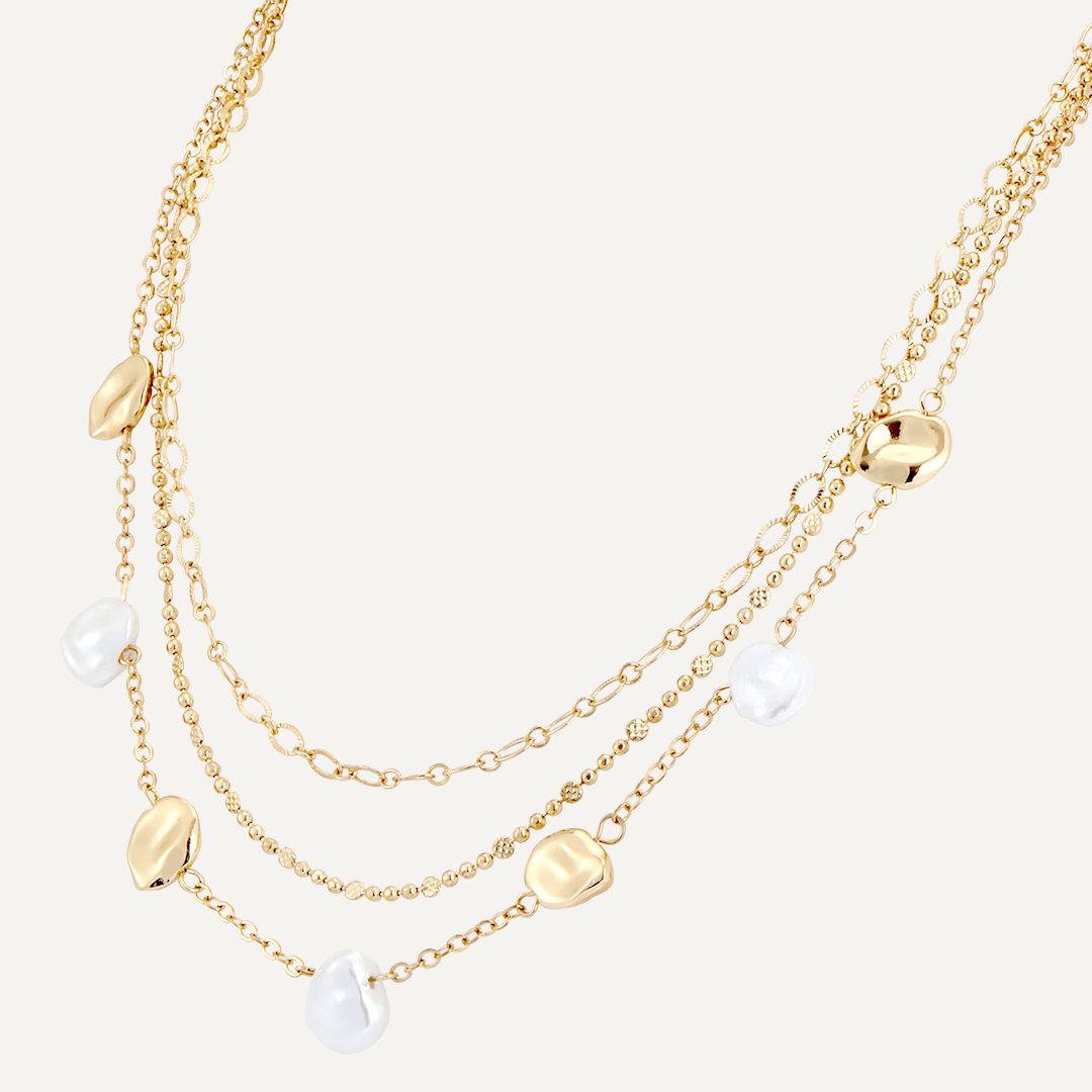 Our Necklace in gold-tone plating features a secure lobster clasp, offering a timeless accessory that brings a touch of sophistication to any look. Its lustrous pearls are a symbol of elegance, ideal for enhancing your wardrobe with classic beauty.