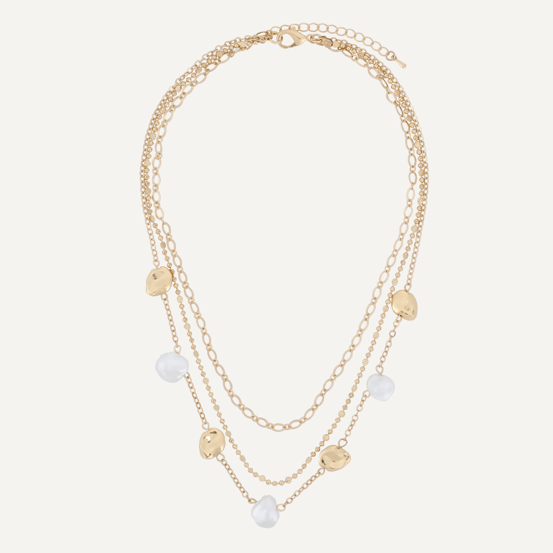 Short Multi-Layer Faux Pearls Necklace In Gold-Tone