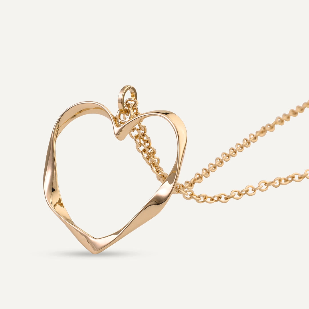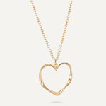 This necklace features a delicate gold chain paired with a beautifully crafted open-heart pendant in a warm gold tone. The pendant's gentle curves and open design create a modern, airy look, making it a versatile accessory for any outfit.