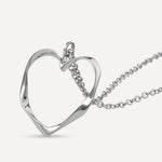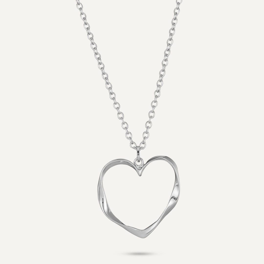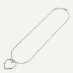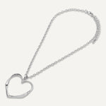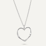 This necklace features a delicate silver chain paired with a beautifully crafted open-heart pendant in a warm silver tone. The pendant's gentle curves and open design create a modern, airy look, making it a versatile accessory for any outfit.