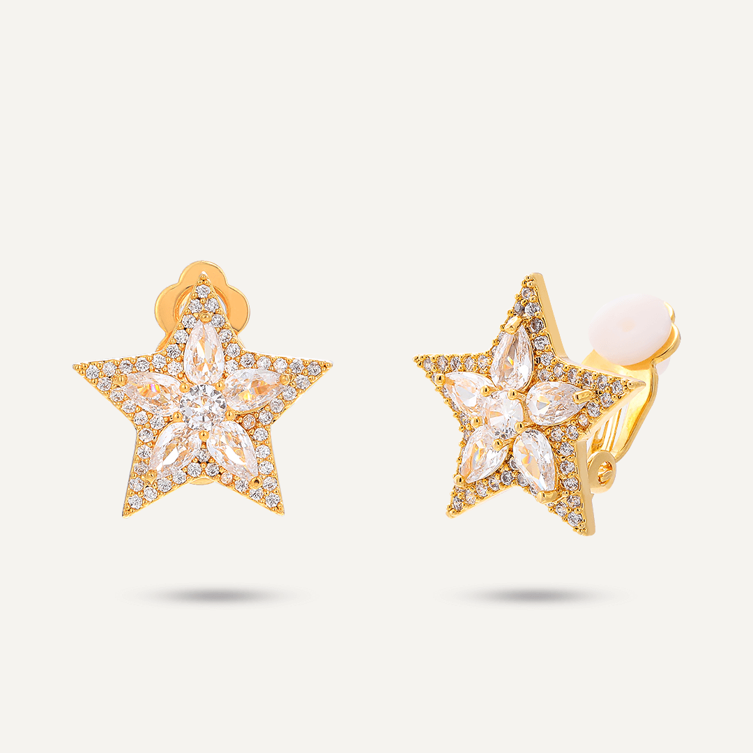 Star Clip On Earrings In Gold-Tone