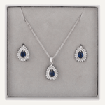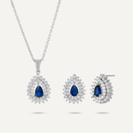 Teardrop Blue Crystal & Cubic Zirconia Boxed Set In Silver-Tone