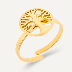 Keira Adjustable Tree Of Life Ring In Gold-Tone