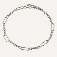 Crafted in 18k gold & white gold-plated stainless steel, it’s waterproof, tarnish-free, and ready to vibe with your full bracelet lineup. Whether worn solo or layered with daintier chains, it delivers that chunky statement energy with effortless cool.