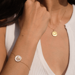 We recommend that you store your plated jewellery in a soft pouch or box when not in use, to increase the longevity of your piece. Do not store your pieces in direct sunlight or in damp and humid environments. Ensure they remain separated, so their chains do not tangle, or scratch against each other.