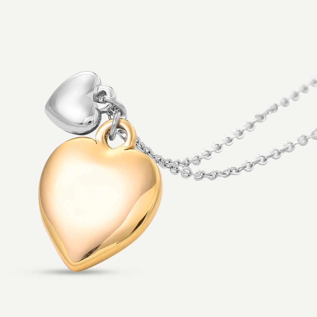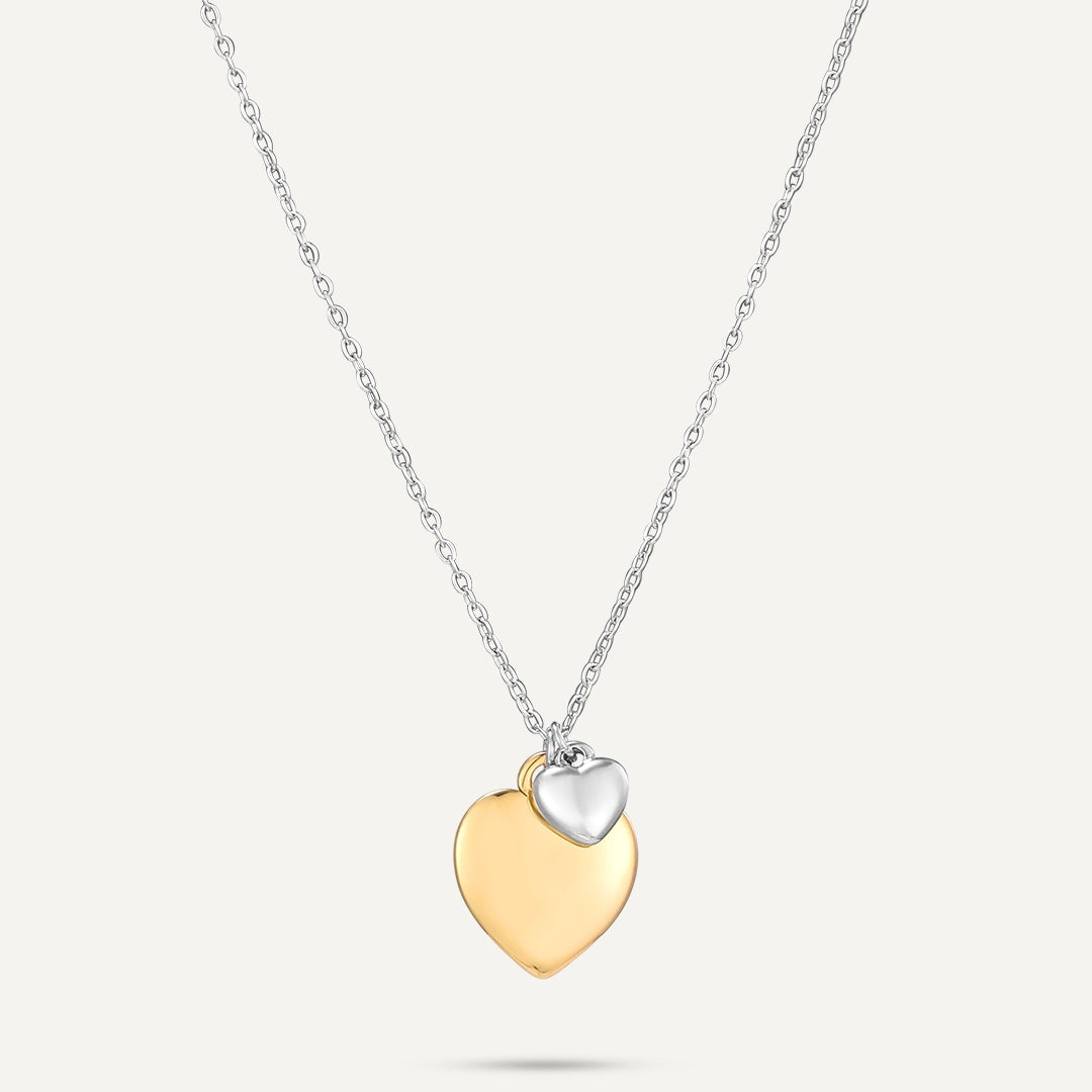 Vibes | Double Heart Drop Necklace | 18K Gold & White Gold-Plated