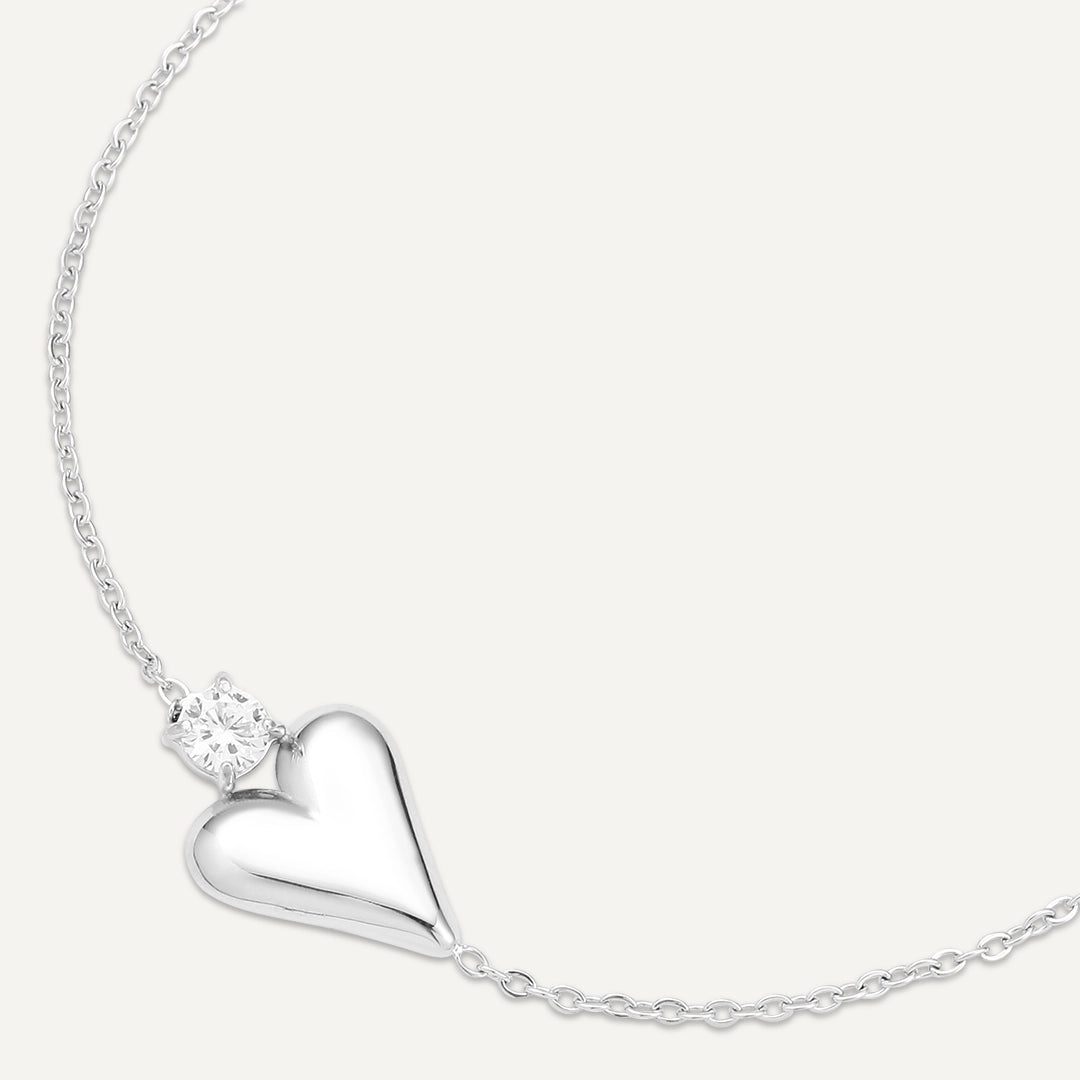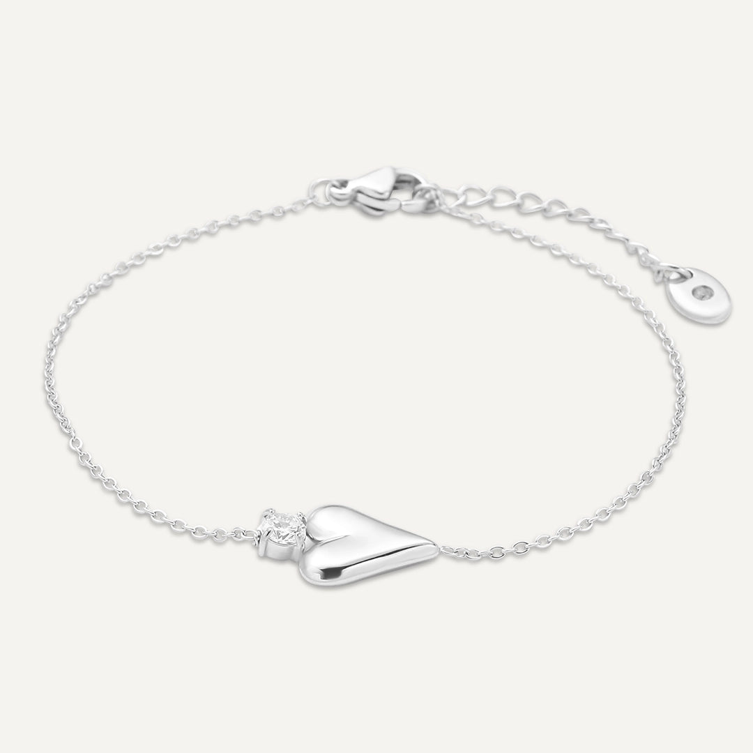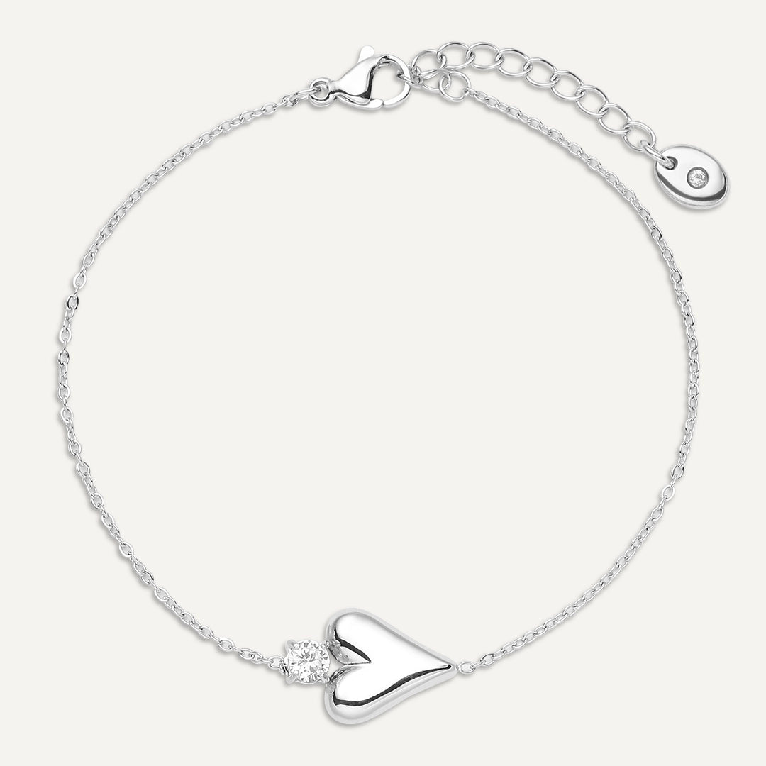 Vibes | Heart Charm Delight Clasp Bracelet | White Gold-Plated