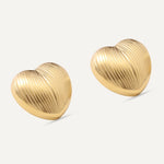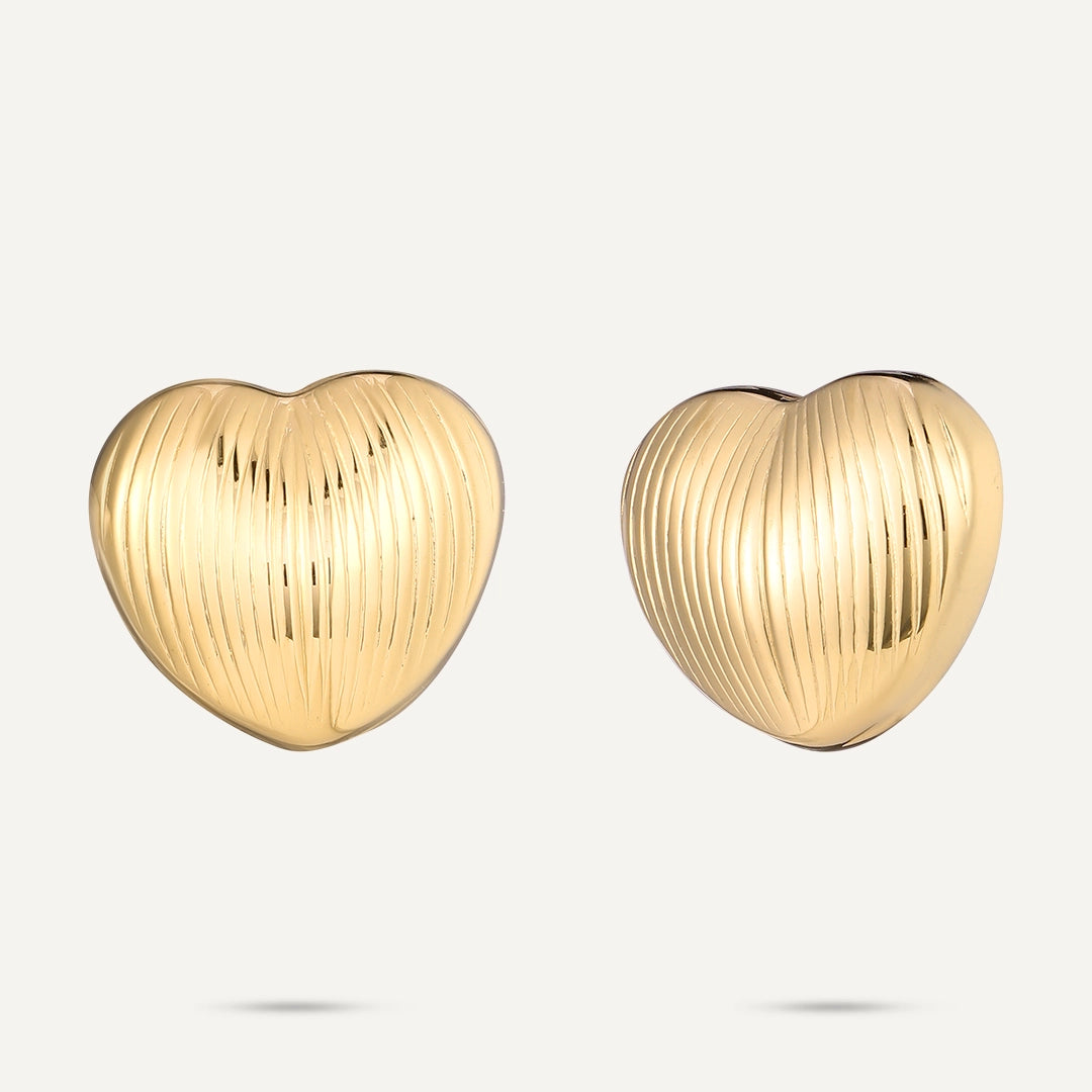 Big heart energy. These gold-plated textured heart studs are bold, flirty, and unapologetically fun. With their grooved surface and glossy finish, they bring that retro-cool vibe to your ear stack. Perfect for solo styling or mixing with huggies and cuffs, these studs serve serious charm from brunch to night out.